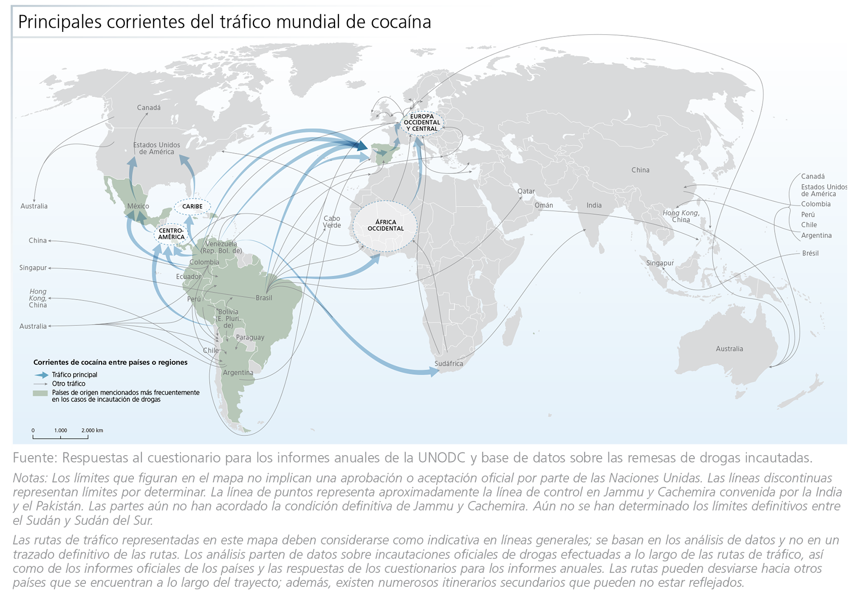 La heroína no es la única droga que pasa por África. Este continente también es utilizado por grupos de narcotraficantes como punto de reexpedición de cocaína para su introducción en Europa por el Atlántico. Además, ahora Europa Oriental ha pasado de ser una zona de tránsito y de destino. "Las cantidades objeto de tráfico son pequeñas, pero ello puede ser un indicio de que el mercado de cocaína está desplazándose hacia el este", reza el documento.