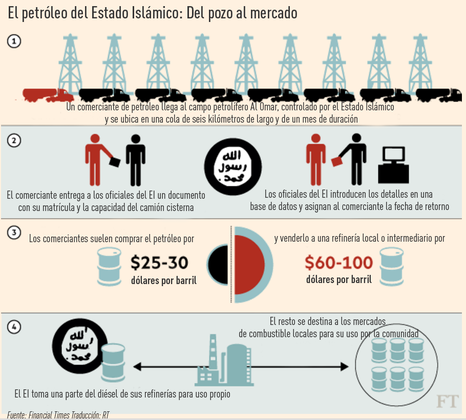 El Estado Islámico ocupó vastos territorios en Siria e Irak, incluido Mosul, haciéndose además con el control de varios yacimientos de petróleo. En esta industria, el grupo terrorista ha llegado a tener empleadas a más de 1.600 personas, la mayoría de ellas reclutadas por todo el planeta.