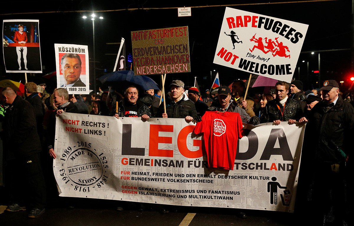 La indignación popular desembocó en la creación del movimiento Patriotas Europeos contra la Islamización de Occidente (PEGIDA, por sus siglas en inglés) que se muestra abiertamente en contra de la llegada de refugiados. Este grupo que se originó en la ciudad alemana de Dresde en 2014 hizo llegar su voz a toda Europa organizando manifestaciones en países como Reino Unido, Francia, Polonia, República Checa o los Países Bajos, en las que participaron miles de activistas, según Reuters.