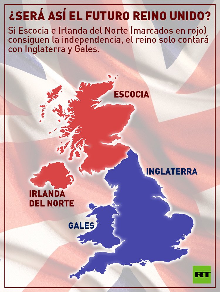 Por lo tanto, de perder a Irlanda del Norte y a Escocia, el territorio británico quedará reducido a Inglaterra y Gales, el mismo estado en el que se encontraba el país en 1707.