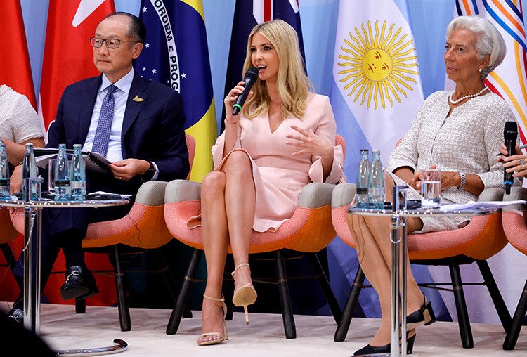 De acuerdo con el tuit, en ese momento el presidente de EE.UU. se encontraba en una reunión bilateral. Según comentó la Administración de Trump citada por la CNN, Ivanka "se sentó brevemente en la mesa principal cuando el presidente tuvo que salir".