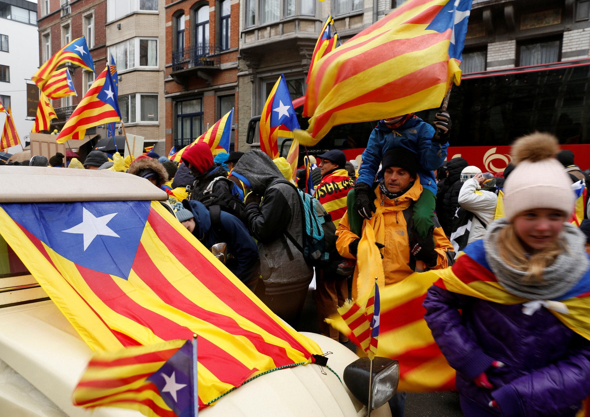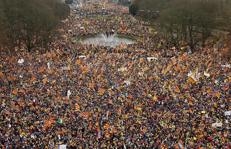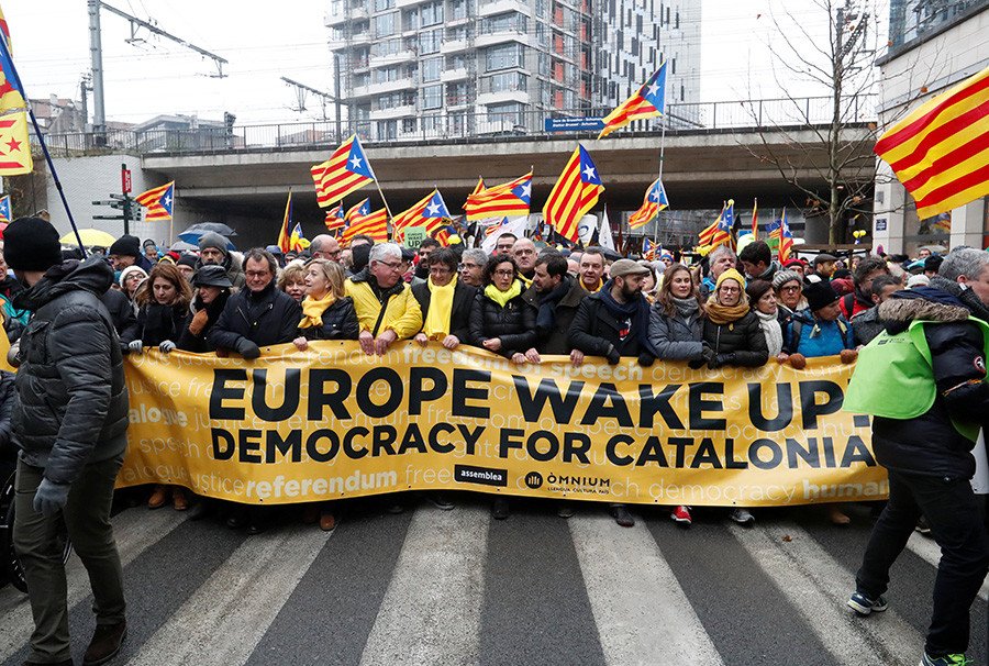 Ayer en Bruselas tuvo lugar una multitudinaria manifestación. Más de 45.000 catalanes llenaron las calles de la capital belga, en su mayoría llegados desde Cataluña en autobuses y vehículos particulares. Con el lema 'Europa, ¡despierta! Democracia para Cataluña' pretendían llamar la atención de la UE sobre su situación después de que la declaración unilateral de independencia no haya recibido el apoyo de ninguna institución ni gobierno comunitario, a la par que protestar por la permanencia en prisión de algunos de los líderes civiles y políticos del independentismo.