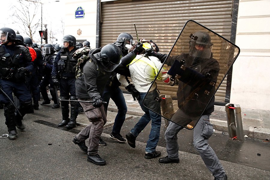 - Este es el cuarto fin de semana consecutivo de movilizaciones del movimiento 'chalecos amarillos', que se iniciaron originalmente por el aumento planificado del impuesto sobre el combustible, pero desde entonces se ha convertido en un movimiento más amplio en contra de las políticas oficiales y reformas económicas.
