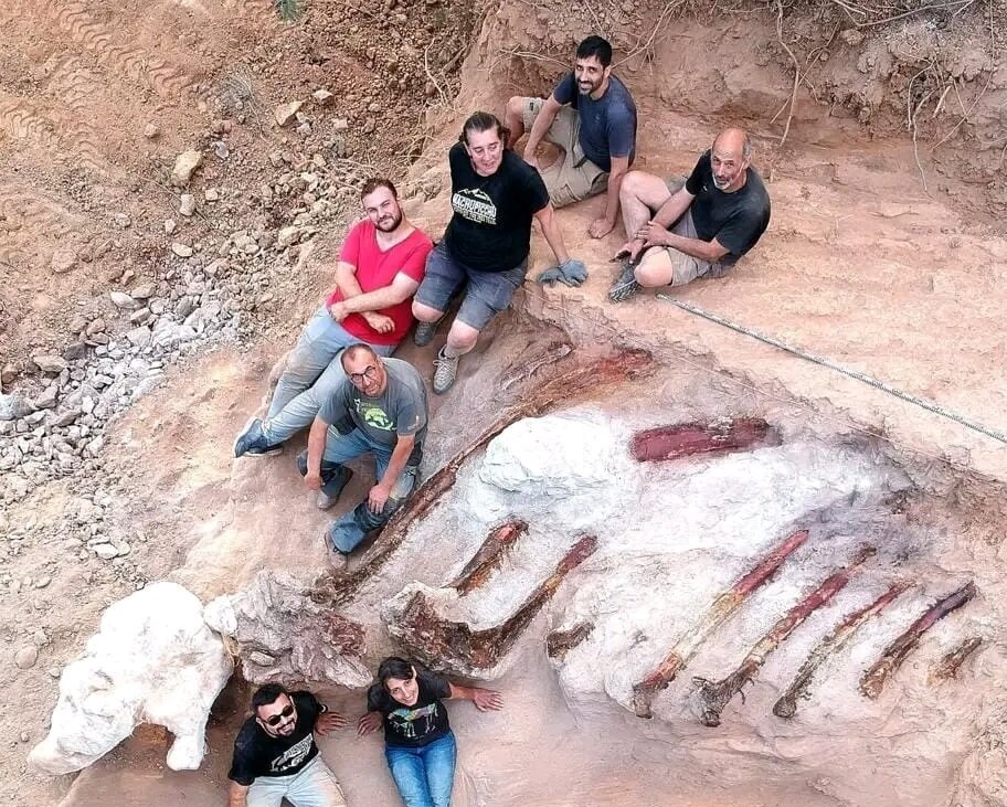 Durante las excavaciones, realizadas del 1 al 10 de agosto pasado, los investigadores recuperaron un importante conjunto de elementos del esqueleto axial, que incluye vértebras y costillas. El análisis de estos elementos sugiere que el enorme animal media unos 12 metros de altura y 25 de largo, un tamaño nunca antes visto en un dinosaurio hallado en el Viejo Continente.