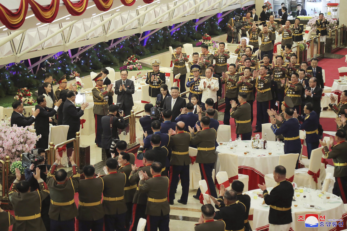 El líder de Corea del Norte, Kim Jong-un, asistió este martes a un banquete con motivo del 75.° aniversario de la fundación del Ejército Popular de Corea, en compañía de su esposa, Ri Sol-ju, y su hija.