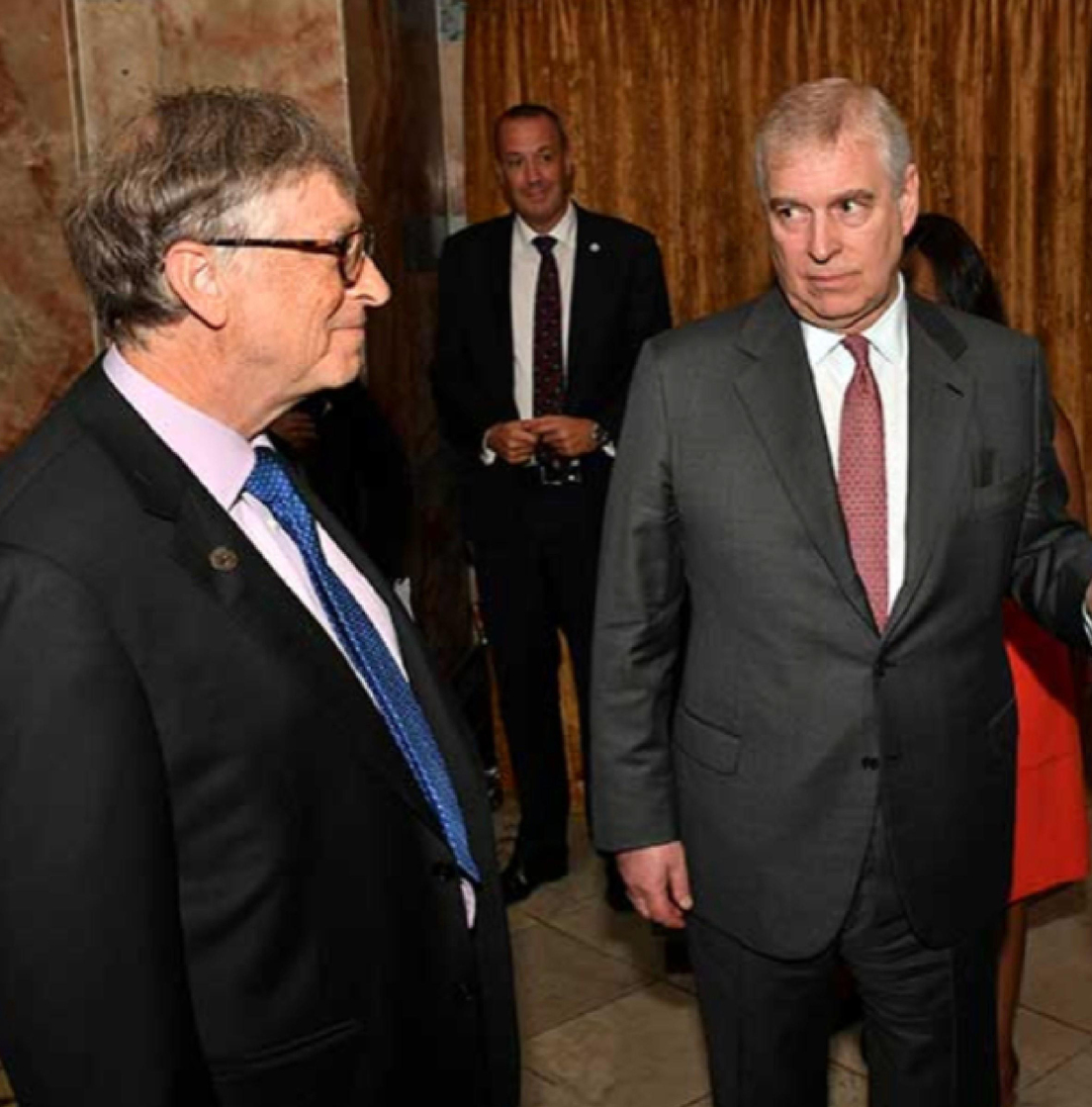 En una de las fotografías se ve a Gates con Andrés Mountbatten-Windsor, el exduque de York, que fue despojado de sus títulos reales por sus vínculos con Epstein.