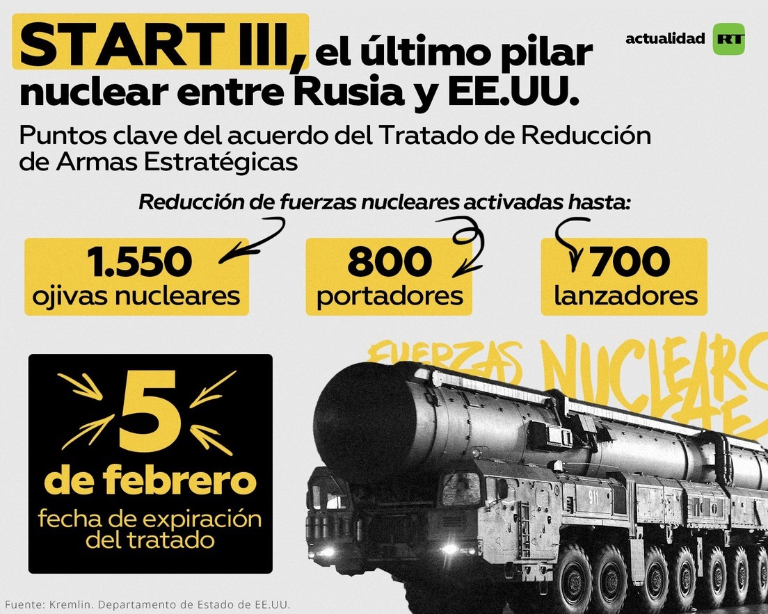Sus declaraciones se producen en el contexto de la expiración del Tratado de Reducción de Armas Estratégicas, también conocido como 'START III' o 'Nuevo START'. Sobre este asunto, la Cancillería rusa aclaró que las partes ya no están obligadas a cumplir los términos del pacto.